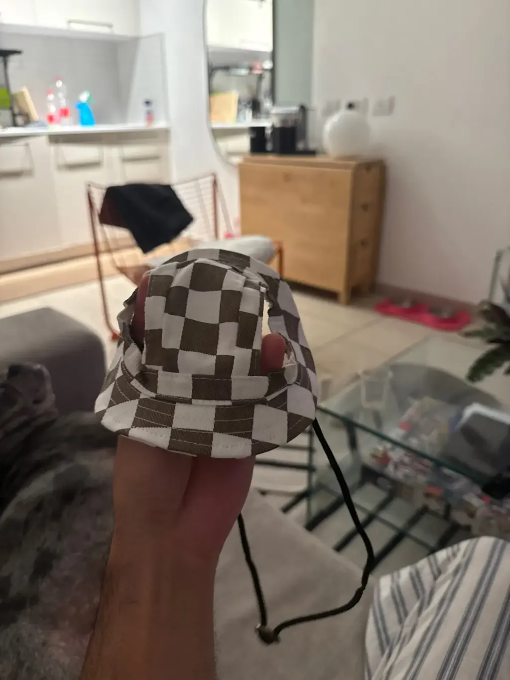 Helena Howell The doggy hat is really cute. It is adjustable for the dog's head size. The hat is as described in the picture.